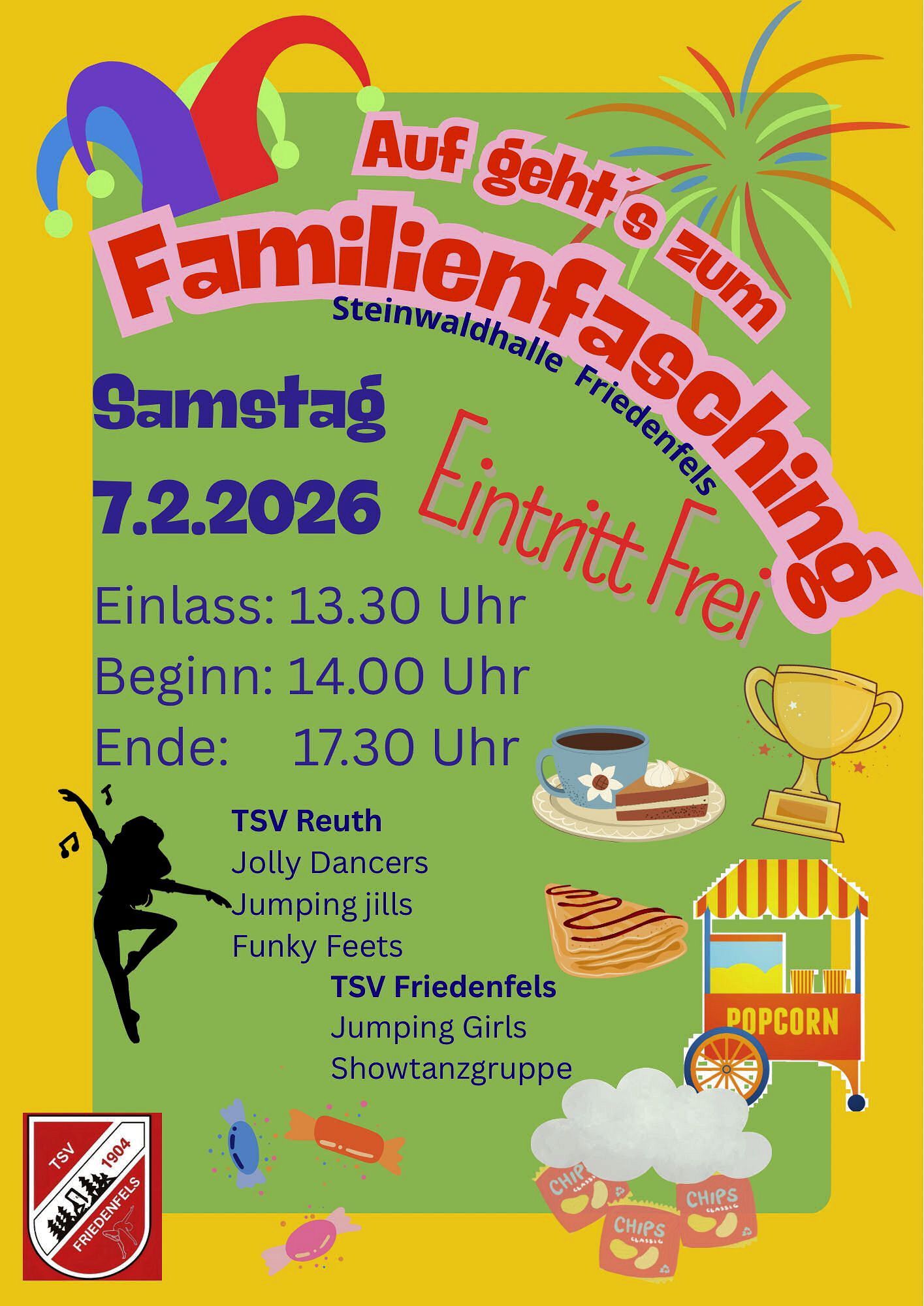 Der Kinder- und Familienfasching des TSV in der Steinwaldhalle entwickelte sich in den vergangenen Jahren zu einem wahren Faschings-Highlight. Weit über 350 Besucher genießen auch heuer wieder einen unterhaltsamen Nachmittag.